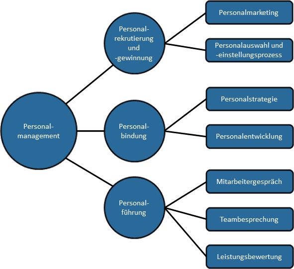 In der Grafik sehen Sie die Gestaltungsfelder und zugehörigen Instrumente zum Thema „Personalmanagement“ in der Pflege. Bitte klicken Sie die jeweiligen Felder an, um weiterführende Informationen zu erhalten.